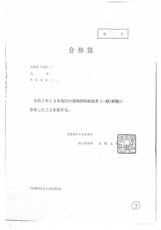 令和7年度埼玉県毒物劇物取扱者試験に合格された方からの合格通知書(2)