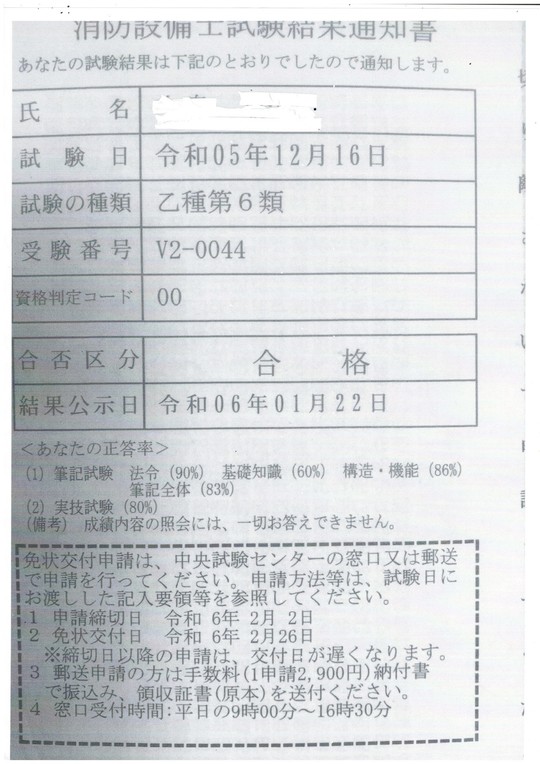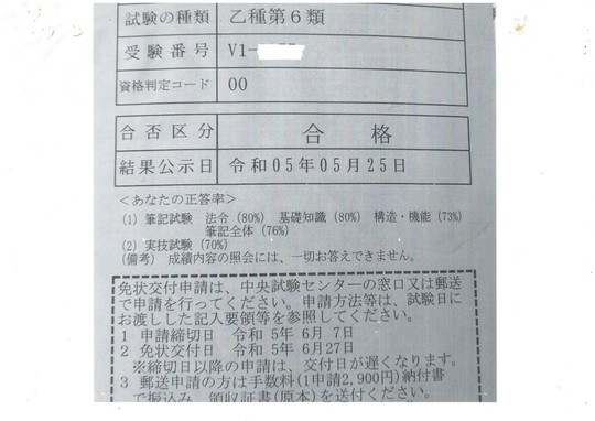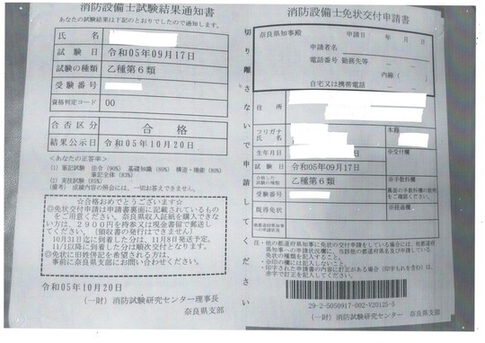 ★受講者様から届いた合格通知書(令和5年5月25日試験合格)