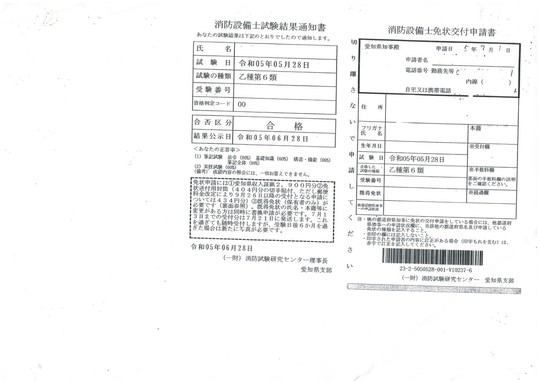 平成26年8月23日消防設備士乙種6類試験(東京)で受験し合格。