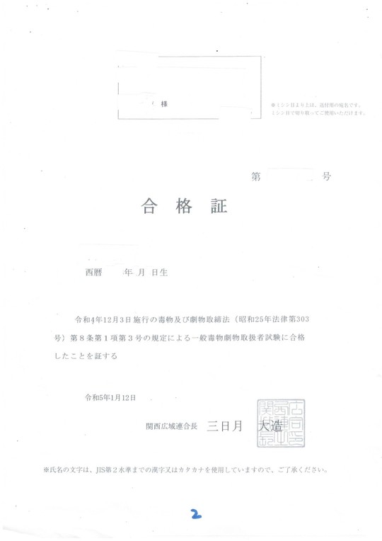 おかげさまで無事合格し、免許証も届きました。今まで以上に頑張っていきたいと