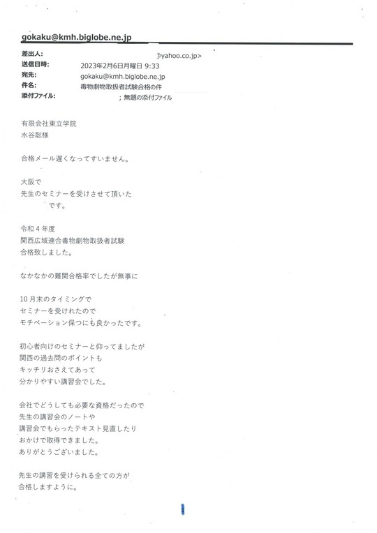 平成25年8月、9月、10月計3回受講。10月27日群馬県毒物劇物試験に1発合格!
